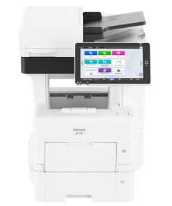 Ricoh IM550F, multifunctional A4 mono, 55ppm, 40ppm in duplex, copy/print/scan/fax, single pass SPDF (DADF) 50 coli, rezolutie print 1200x1200dpi, copy 600x600dpi, PCL5 si 6/PS3/PSD, fco 2,4s, procesor 1,3GHz, memorie 2GB + 320GB HDD, alim 100+500 coli (max 2600), iesire 500 coli, paper 60-220gsm, duty 250k/luna, recomandat 16667p/luna, toner start 10000p, USB/Ethernet Gigabit/Bluetooth/NFC/SD slot (opt WiFi), touch screen 10.1", TEC value 0.77 kWh/week, scan speed 60ipm mono, 100ipm mono duplex/40ipm color, 62ipm color duplex, scan to E-mail, Folder, USB, SD Card, scan format TIFF, JPEG, PDF, High Compression PDF, PDF/A, warm up 25,4s, consumabile: toner 418478 (25,5k), cilindru M0CH3051 (500k), dimensiuni 48×53,9×64,4 cm, greutate 29kg, garantie 12 luni, on depot.