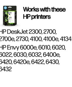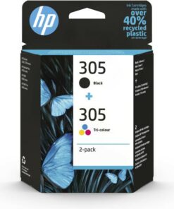 HP Pachet cu 2 cartuşe de cerneală 305, original, tricolor/negru, Productivitate Standard, Negru, Cyan, Magenta, Galben, Cerneală bazată pe colorant, Cerneală pe bază de pigment, 2 buc., Ambalaj dublu