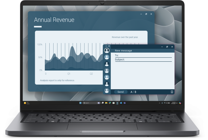 Laptop Dell Pro 14 (PC14255), 14″, Non-Touch, FHD+, 300 nits, 45% NTSC, Anti-Glare, FHD RGB Camera, TNR, Camera Shutter, Fingerprint Reader, ENERGY STAR Qualified, EPEAT Gold with Climate+, AMD Ryzen 3 210 (4 cores, 8 threads, up to 4.7 GHz), AMD Radeon 740M Integrated Graphics, 8GB: 1 x 8GB, DDR5, 5600 MT/s, 512GB SSD, MediaTek Wi-Fi 6E MT7922, 2×2, 802.11ax, Bluetooth wireless card, 65W AC adapter, 4.5mm barrel, 3-cell, 45 Wh, ExpressCharge Capable, ExpressCharge Boost Capable, English International backlit Copilot key keyboard, External ports: Network port: 1 x RJ45 ethernet port (1 Gbps), USB ports: 1 x USB 3.2 Gen 1 (5 Gbps) port, 1 x USB 3.2 Gen 1 (5 Gbps) port with PowerShare, 2 x USB (40 Gbps) port with Power Delivery and DisplayPort, Audio port: 1 x global headset port, Video port(s): 1 x HDMI 2.1 TMDS port, Power-adapter port: 1 x 4.5 mm x 2.9 mm DC-in, Security-cable slot: 1 x security-cable slot (wedge-shaped), Internal slots: M.2: 1 x M.2 2230 slot for solid state drive, 1 x M.2 2230 slot for WLAN card, Memory: 2 x SODIMM slots, DDR5, 5600 MT/s, Maximum memory configuration: 64 GB, Weight: 1.36 kg, Windows 11 Pro, 3Y ProSupport and Next Business Day Onsite Service