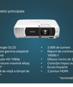 PROJECTOR EPSON EB-FH08, Tehnologie 3LCD, Luminozitate; 3600 Lumeni, Rezolutie: FullHD